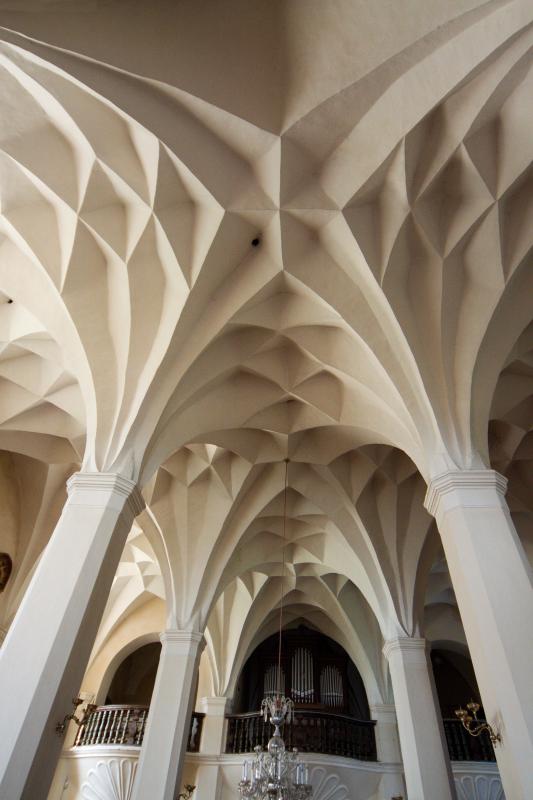 Kostel Nanebevzetí Panny Marie v Nezamyslicích vznikl již ve třetí čtvrtině 13. století. Z původní stavby se dochovala pouze dolní část hranolové věže, loď je gotická. Kolem roku 1380 byl kostel rozšířen o nové kněžiště s příčnou lodí a pěknými plaménkovými kružbami v oknech. Návštěvníka však nejvíce zaujme vzácná sklípková klenba lodi sklenutá počátkem 16. století údajně ještě za Půty Švihovského z Rýzmberka.